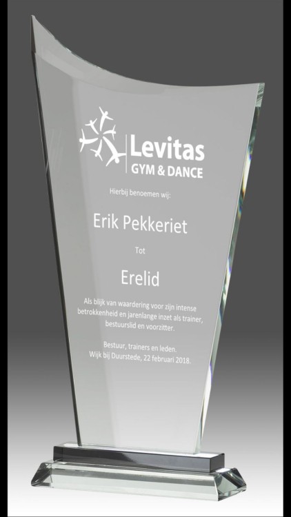 De statuten van onze vereniging maken het mogelijk om in uitzonderlijke gevallen iemand tot Erelid te benoemen, mits de Algemene Ledenvergadering hiermee instemt. Deze voordracht vond tijdens de afgelopen Ledenvergadering, in het bijzijn van Erik plaats en er werd unaniem 'voor' gestemd. Hiermee werd Erik direct tot Erelid van Levitas benoemd; een titel voor het leven.