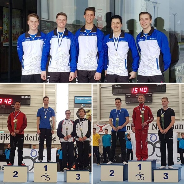 Wilco nam op voltige risico door een moeilijk rugwaarts transport element in zijn oefening te doen, die nog niet constant is. Dit element lukte, maar hierna was hij uit balans en moest hij het toestel toch nog voortijdig verlaten. Zijn ringenoefening was ook iets minder. De andere vier toestellen waren stabiel en strak, waardoor hij alsnog een prima meerkampcijfer haalde. Luc en Michiel turnden beide vijf toestellen top, waarna hun angstgegner rek zou uitmaken of zijn in de buurt van het podium zouden komen. Beide turnden hun oefening ook hier uit waarna Luc op plek 4 en Michiel op plek 2 eindigde. Zo gingen er uiteindelijk twee medailles mee naar Wijk bij Duurstede maar vooral ook: vijf tickets voor de 1/4 finale!